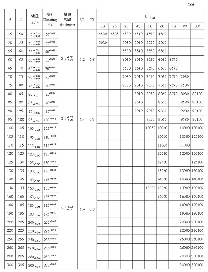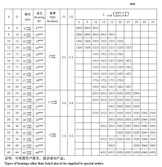 JS1 系列軸承標準尺寸
