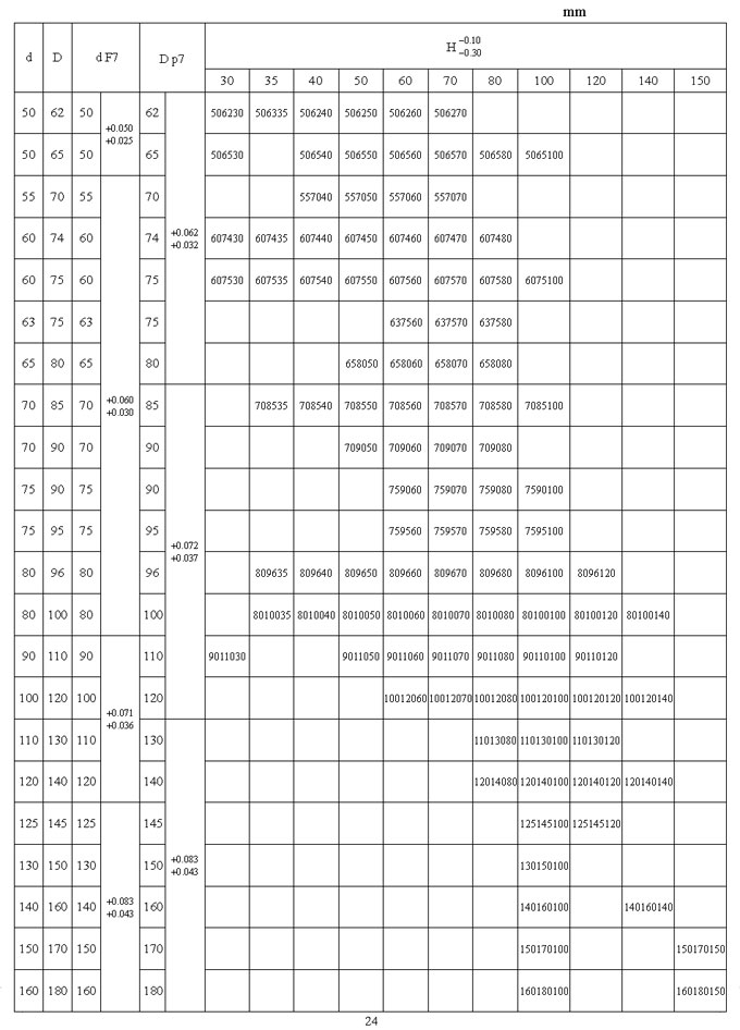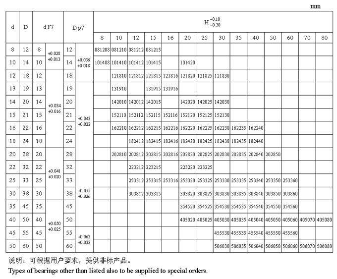 JX 系列軸承標準尺寸