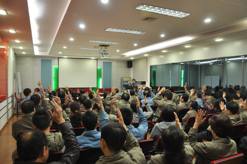 公司六屆二次職代會于2015年3月31日下午與4月9日的下午召開兩次職代組長擴大會議。會議對分別對推薦公司總經理陳晉輝同志為2015年漳州市勞動模范人選及推薦黨委副書記兼紀委書記、工會主席張泰生同志為2015年福建省五一勞動獎章候選人兩項議案進行認真審議。經采用無記名投票方式表決,均以全票贊成,零票反對,零票棄權,同意推薦公司總經理陳晉輝同志為2015年漳州市勞動模范候選人、同意推薦黨委副書記兼紀委書記、工會主席張泰生同志為2015年福建省五一勞動獎章候選人。