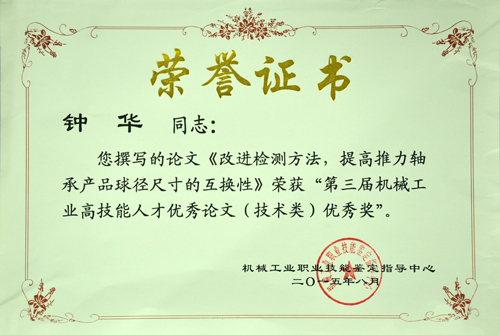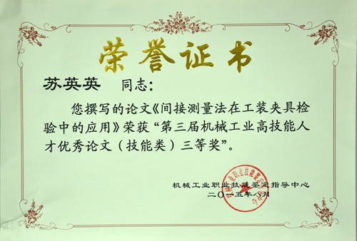 近日,第三屆機械工業(yè)高技能人才優(yōu)秀論文評選工作圓滿結束。此次評選由機械工業(yè)職業(yè)技能鑒定指導中心主辦,行業(yè)協(xié)會、企業(yè)專家組成的評審專家委員會對140余篇論文進行了專業(yè)評審。公司員工蘇英英撰寫的《間接測量法在工裝夾具檢驗中的應用》獲得技能類論文三等獎,鐘華撰寫的《改進檢查方法,提高推力軸承產品球徑尺寸的互換性》獲得技術類論文優(yōu)秀獎。此外,公司技能鑒定站站長洪麗玲也榮獲機械工業(yè)高技能人才培養(yǎng)優(yōu)秀組織者。