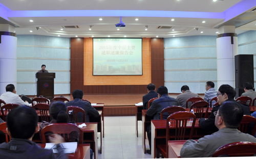 2015年12月27日,公司在俱樂部會議室召開 2015 年度中層主管述職述廉報告會。黨委副書記張?zhí)┥鞒謺h,公司高管及全體中層主管參加了會議。會上46名中層主管分別代表部門、車間以 PPT 形式作述職述廉報告。