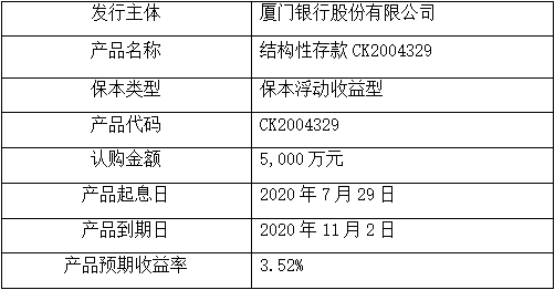 委托理財受托方:廈門銀行股份有限公司(以下簡稱“廈門銀行”)。