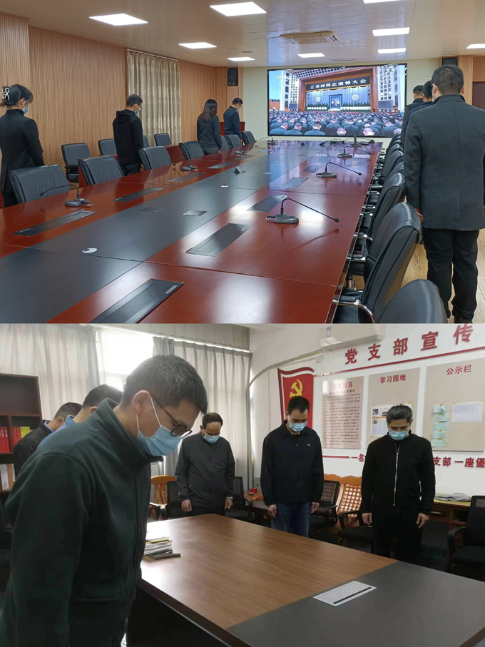 收聽收看過程中,大家悲痛肅立,在悲壯的哀樂聲中默哀三分鐘,認真聆聽習近平總書記所致悼詞,追憶江澤民同志光輝的一生和建立的豐功偉績,深刻感悟江澤民同志的精神風范。