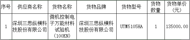 微機(jī)控制電子萬能材料試驗(yàn)機(jī)(100KN)采購與安裝中標(biāo)公告