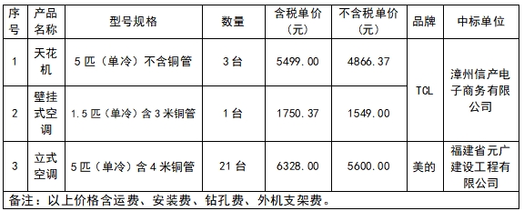 龍軸集團(tuán)采購空調(diào)中標(biāo)公告