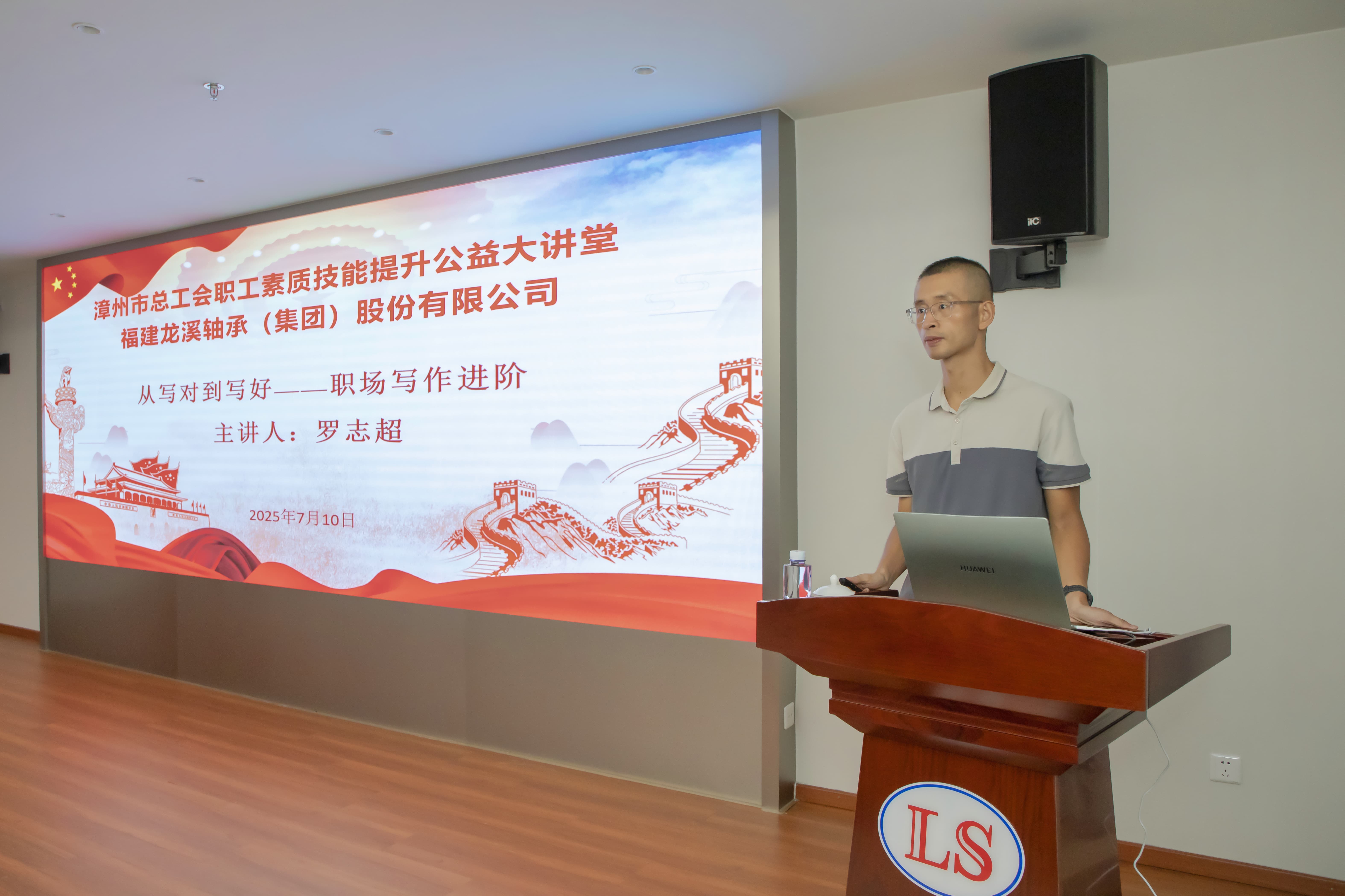 為進一步提升員工綜合素養,助力龍軸集團高質量發展。在漳州市總工會的大力支持下,公司于7-8月組織兩場員工素質提升公益大講堂專題培訓,邀請閩南師范大學新聞傳播學院副教授、碩士生導師羅志超和漳州理工職業學院衛生健康學院講師許淵能分別講授“從寫對到寫好-職場寫作進階”和“高品質溝通技巧與社交”課程,相關職能部門人員參加培訓。