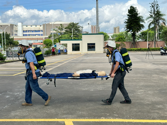 隨后,開展滅火和應急疏散預案演練,由陳志雄擔任總指揮、張逸青擔任副總指揮。演練模擬藍田三廠區辦公樓著火,觸發消防報警系統,公司立即啟動應急預案,組織員工開展應急疏散、撲救初起火災、報警及急救等應急處置程序。