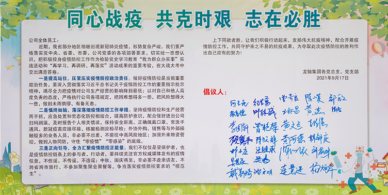 會議結束后,公司各黨總支、黨支部書記隨即聯合發起“同心戰疫 共克時艱 志在必勝”倡議,號召廣大黨員、員工嚴格落實黨中央、省委、市委、公司黨委的各項部署要求,切實統一思想認識,把積極投身疫情防控工作作為檢驗黨史學習教育“我為群眾辦實事”實踐活動和“再學習、再調研、再落實”活動成果的重要考驗,在大戰大考中交出滿意答卷。