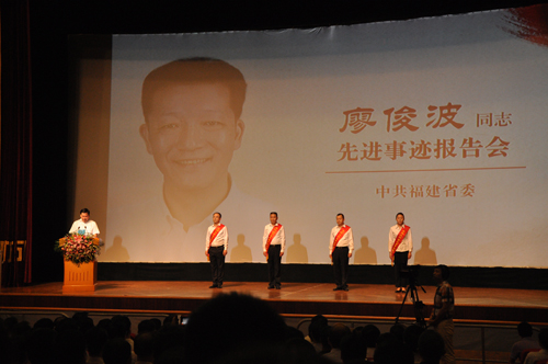 ????報告會的成員們用樸實的語言、真摯的情感和鮮活的事例,從不同角度、不同層次,生動講述了廖俊波同志的先進事跡,讓所有聽眾接受了一次深刻的黨性教育和靈魂洗禮,贏得了大家陣陣掌聲。公司參加報告會的人員紛紛表示,整場報告會感人肺腑,令人動容,激勵我們時刻牢記廖俊波先進事跡,并把這份寶貴的精神發揚光大,滿懷激情地投入建設富美漳州的征程中。