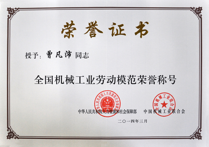 全國機(jī)械工業(yè)勞動模范(曾凡沛)